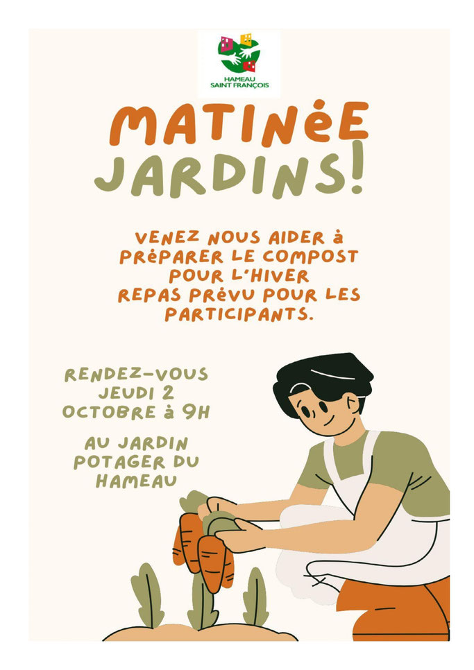 Un mardi sur deux, à midi, les personnes qui le souhaitent peuvent se retrouver ensemble au Hameau Saint François le temps d'un repas… Mais attention, pour y participer, il est nécessaire de s'inscrire à l'avance et de participer à l'un des temps de service qui permettent le repas : cuisine, mise de la table, nettoyage, vaisselle…
